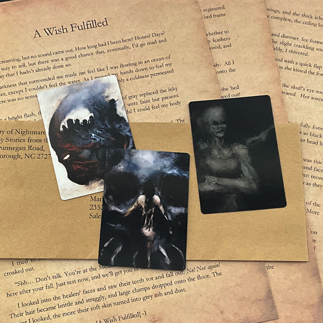 He dies... and lives again. Every time he leaves the Shadow Nook, he is left with a set of cards and an account of what happened to him. Since he can't remember what happened, this is his adventure in the dark realm of his nightmares.