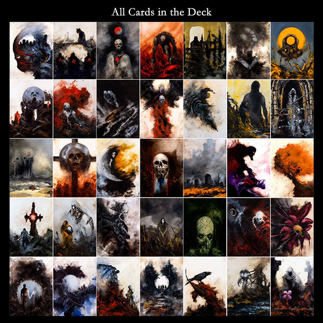 Set of 35 storytelling inspiration cards with original dark fantasy oil painting artwork AND a 125-page full color PDF showing you how to use the cards. Use them for shadow work oracle reading, create new stories for your latest short story or novel, or use them in your DnD* and other role-playing games. Engage your imagination to create worlds or games that are uniquely yours!