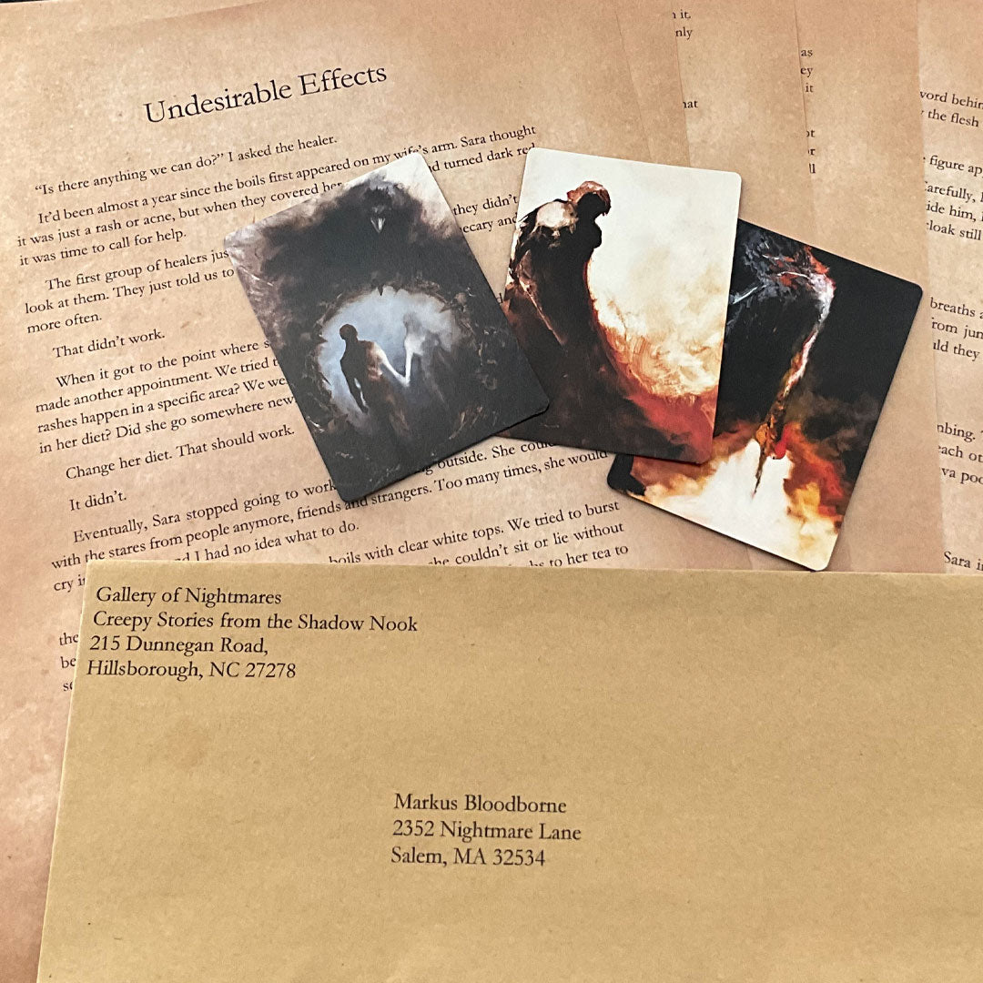 He dies... and lives again. Every time he leaves the Shadow Nook, he is left with a set of cards and an account of what happened to him. Since he can't remember what happened, this is his adventure in the dark realm of his nightmares.