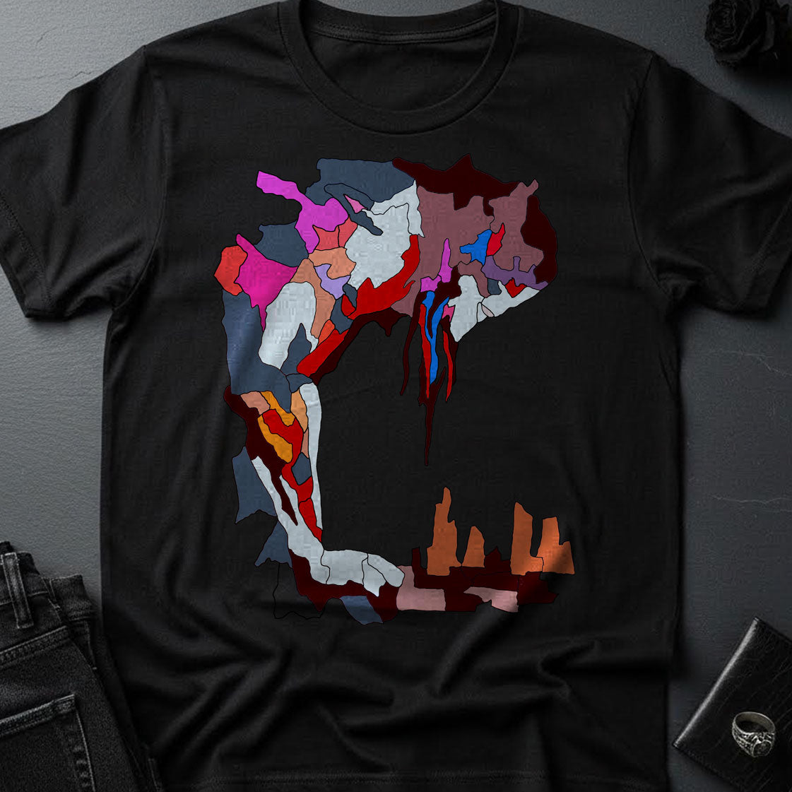 Dark Art meets a stained-glass graphic style look! This dark and beautiful t-shirt is really soft because, well... it's a Bella + Canvas 3001 and they are wicked soft. Each design is an original concept based on one of my oil paintings.