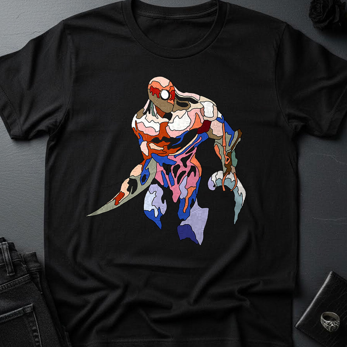 Dark Art meets a stained-glass graphic style look! This dark and beautiful t-shirt is really soft because, well... it's a Bella + Canvas 3001 and they are wicked soft. Each design is an original concept based on one of my oil paintings.