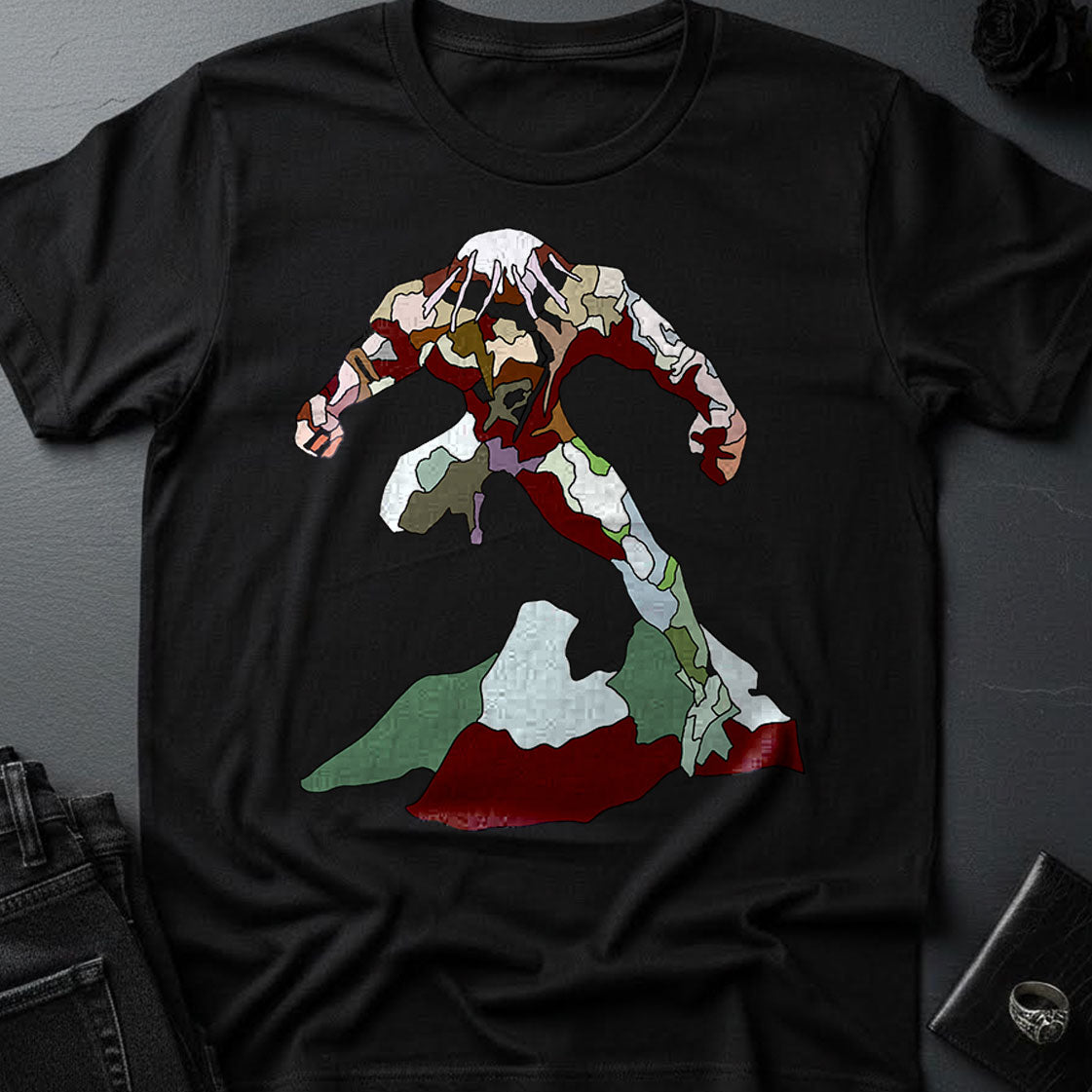 Dark Art meets a stained-glass graphic style look! This dark and beautiful t-shirt is really soft because, well... it's a Bella + Canvas 3001 and they are wicked soft. Each design is an original concept based on one of my oil paintings.
