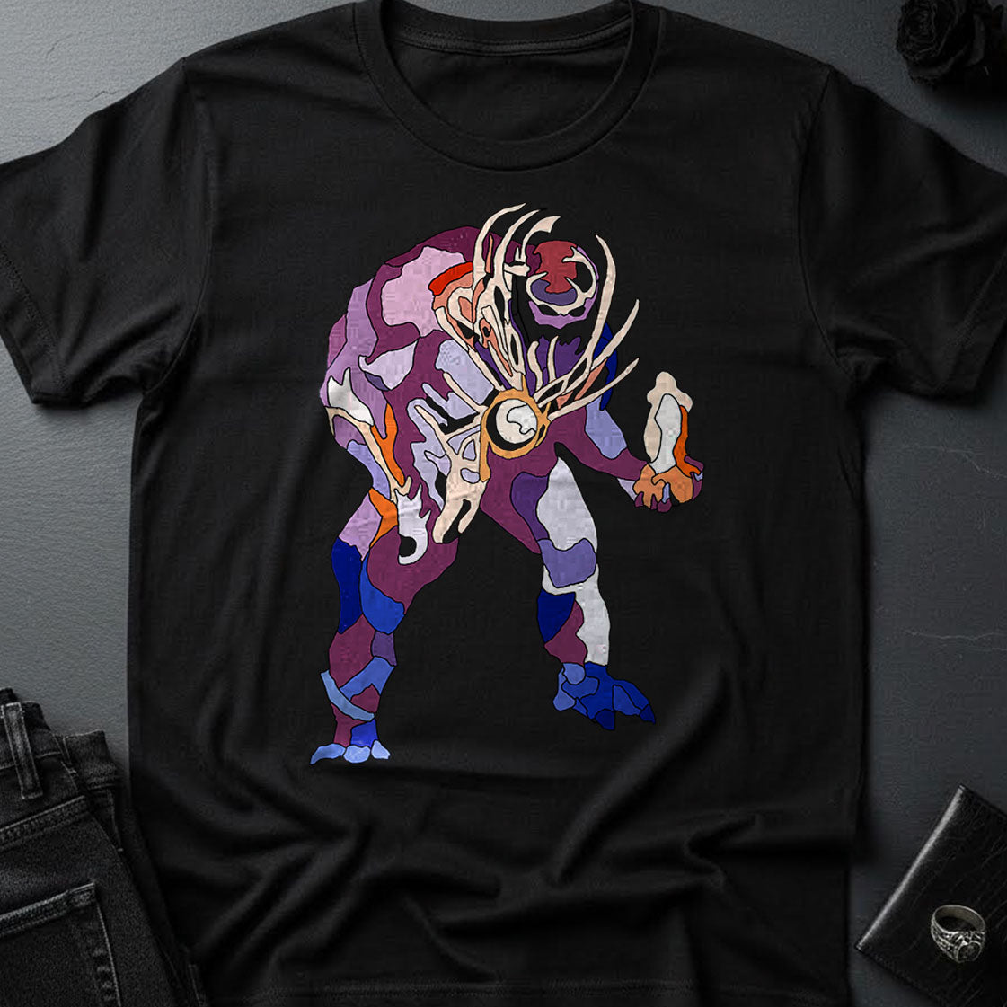 Dark Art meets a stained-glass graphic style look! This dark and beautiful t-shirt is really soft because, well... it's a Bella + Canvas 3001 and they are wicked soft. Each design is an original concept based on one of my oil paintings.